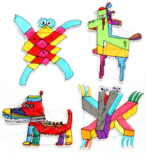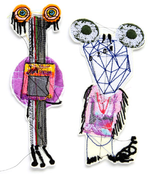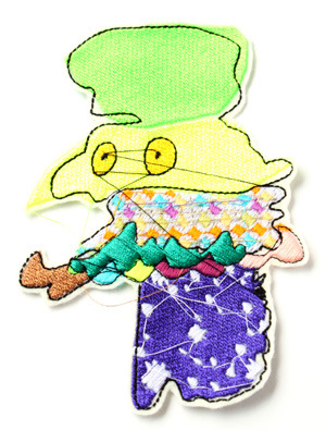 イラスト的に描かれた作品から抜き出された彼らは、イラストらしいパキッとした感じと、刺繍ならではの糸のゆらめき、そして姉川作品の特徴でもあるピロピロと飛び出す糸が組み合わさって、なんとも気になる存在です。