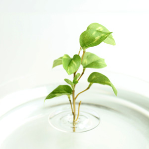 そこでまず手始めに、一番近くに生えていた、小さくて花のないこんもりした草を浮かべてみます。いわゆる雑草ってやつです。名前は...なんでしょう?初めて見る草。