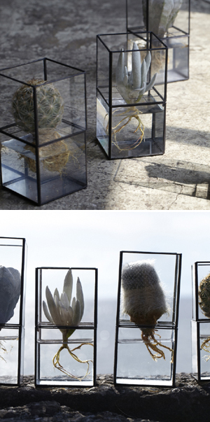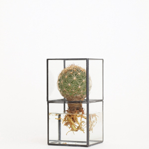 これを制作しているのは1012|TERRAという2人(妻沼大介さんと山田研一さん)なのですが、このユニット名の一つのルーツになっているのがテラリウムという陸上生物をガラス容器で飼育栽培する技術の総称で。元々は19世紀にロンドンで生まれていて世界各地の生物を鑑賞等の目的で国内に持ち込むための技法として生まれています。なので、サボテンを必ずしも入れて楽しむ必要はなくて、野菜とかそういうものを入れてもオッケー。でも、サボテンを入れることで一つの世界観を作ったのも事実なのでちょっとサボテンの説明。