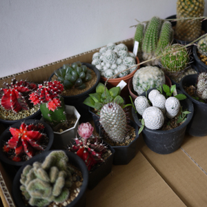次に、サボテンとのセット売り。実は妻沼さん、東京近郊にあるいくつかのサボテン農家さんと提携していて、いつもサボテンをそこから仕入れているそうなのですが、今回は密買用に特に変わったサボテンを時期ごとに仕入れてもらうことにしてあります。なので、こちらは注文いただいた時点でその時選べるサボテンの写真を送るようにします。そこで選んでいただいて、それをセットにして送る、という感じです。ちなみにこの場合にはサボテンに応じたオススメのサイズの容器で送ろうと思っていますが、育てるつもりだから一回り大きなサイズで等要望に応じることも可能です。あと具体的に例えばこの品種で!みたいなのも一応お聞きすることもできますが、どうしても妻沼さん自身はサボテン農家さんではないことと、サボテンの価格は上記のような理由によりピンキリなこともあって、基本は任せてもらう方がうれしいです。
