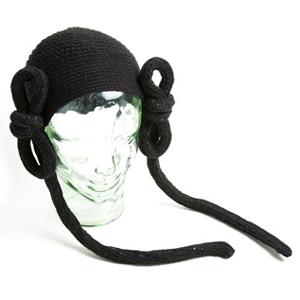 それでも分かりやすいモノを作ってくれていたら、まだ分かる気もするのですが。そこで作られているのが鯉のぼりの生地を使った「KIYOSHIRO IMAWANO」という名前のスーツや“CHONMAGE”HAND KNITというその名の通りちょんまげがついているニットキャップとか。面白いけど、分かりづらい商品群でして。まあ確かにこの商品群で理論武装されても困るのですが、これ密買的にピックした商品で、他に(あえて言うと)普通の服っぽいものも作られているんですよね。そしてそれが同じシーズンの作品群として紹介されたりしている。統一感というか輪郭さえつかませてくれない。