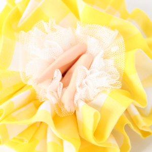 スカートは、リクエストを受けた外側の生地の他に、内側にも別の生地が入ることが多いですが、こちらも全体のイメージに合わせて深谷さんがコーディネート。