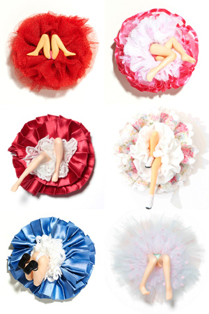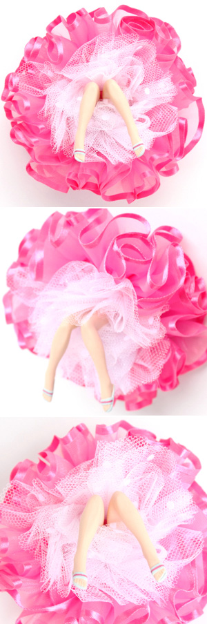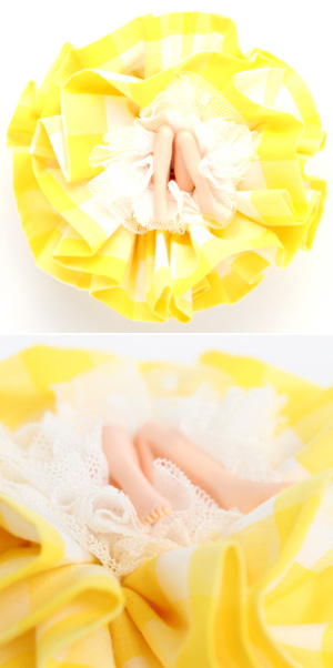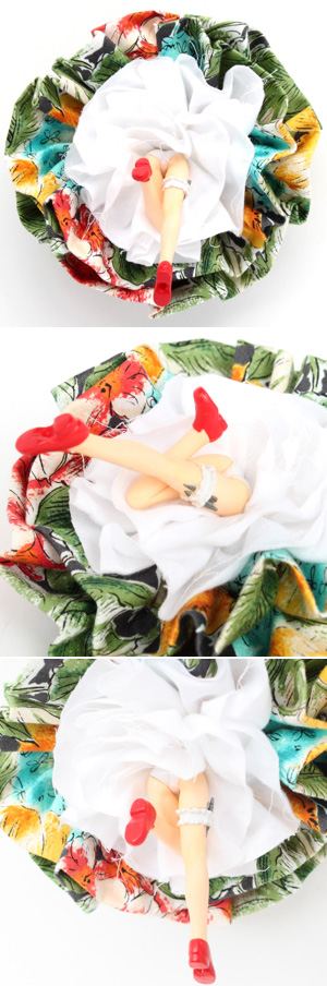 花咲くように丸く開いた布の中には、若い乙女の脚が2本。
