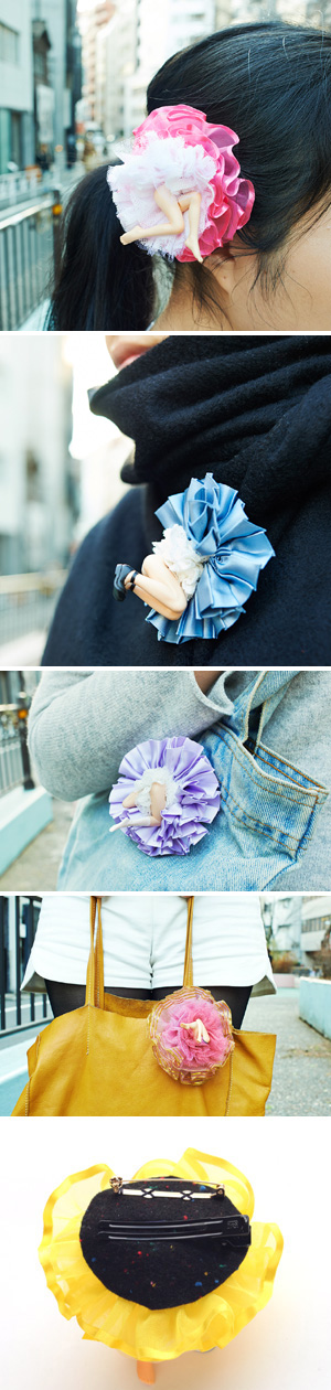 髪以外にも、服やカバンにも留められるようにピンが付いているので、ブローチのようにして楽しむこともできます。