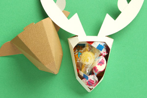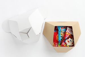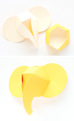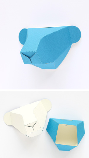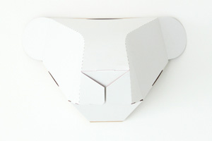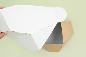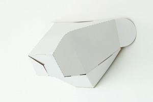 こちらは、段ボール紙でできていて、白い面と、クラフト紙の面、どちらでも作ることができるリバーシブルタイプ。お好みの方を表にして、組み立てることが可能です。