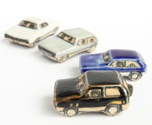 岡村さんの作品に、焼き物のミニカーのシリーズがあって、その1種類に軽トラがあったのだとか。