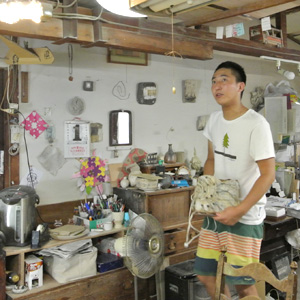 ここは、岡村さんとお父さん、お姉さんが一緒に使う、焼き物の工房。陶芸教室や、子供向けの造形教室にも使われているというこの場所は、ワクワクしてしまう自由な雰囲気で溢れかえっています。