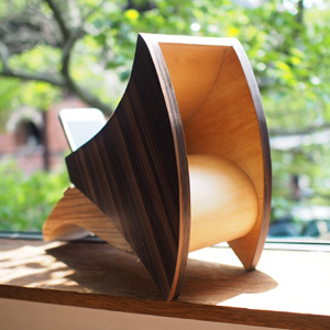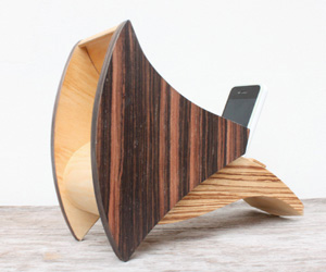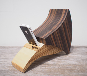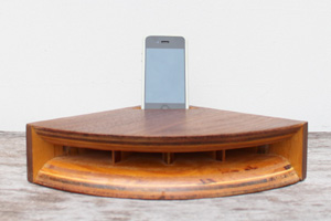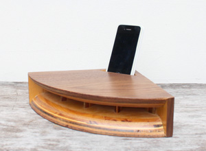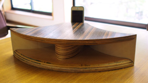 実はこれ、iPhone用のスピーカーですが、電気を使いません。言うならば、アンプラグドなスピーカーなのです。