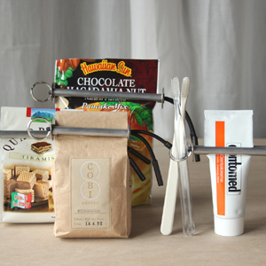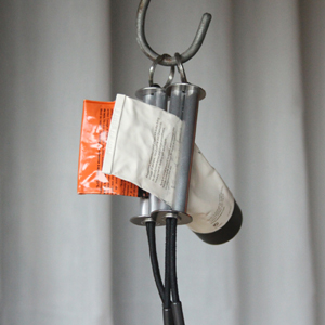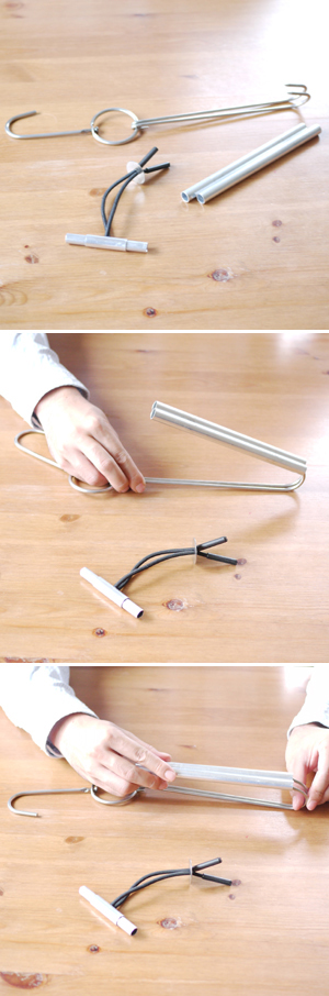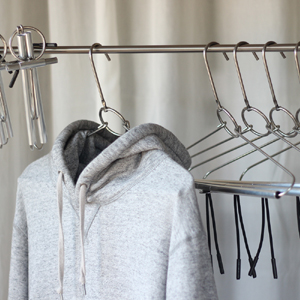 今回ご紹介するのは灰皿とたためるハンガー、それと空いた袋を止めておくジップみたいなものです。それぞれに共通するステンレスのパイプや輪留め、ワッシャー、工業用のゴムなんかが使われていて、同じシルバーステンレスの質感の商品群になっています。