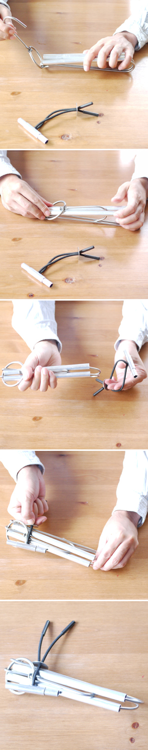 あとは上部の輪っかで棒部分を挟み込んで連結部分のゴムで全てをまとめればオッケーです
