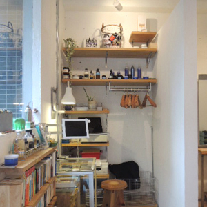話を伺った美容室の入口、棚右上の天井際にちらり。
