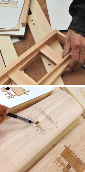 伊勢神宮のモチーフはレーザーで彫りこまれています。