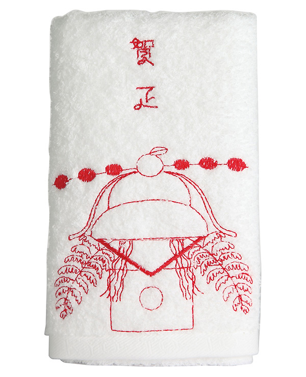 おめでとうございます!そんな気持ちを直接伝えるお年賀。ふわふわタオルに刺繍がされています。