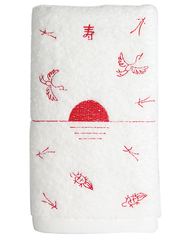 赤いタオルに白い刺繍がされたタイプもあります。