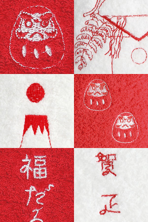 刺繍も、お正月らしく新年の風物詩を描いたもの。