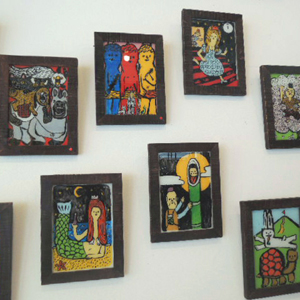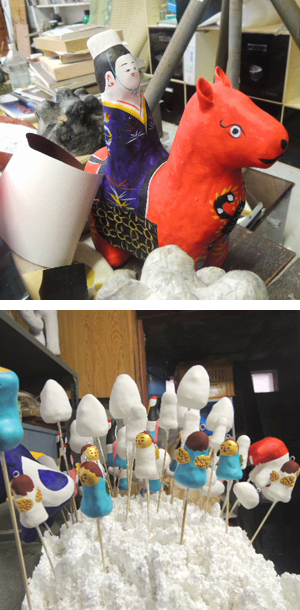 アトリエで見た様々な張子の完成版が沢山並んでいました。