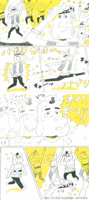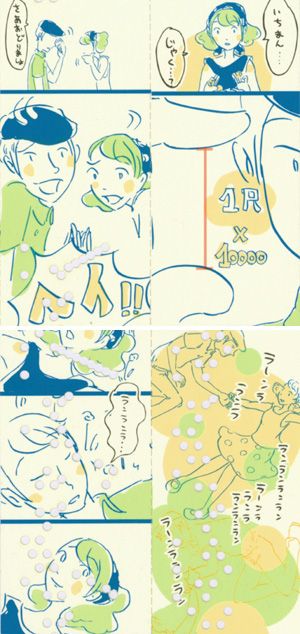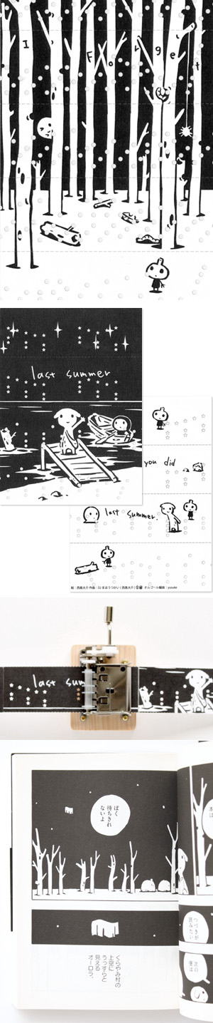 誰でも知っている曲を使いながらも、音を分散して配置することで、作品としての緩急をつけると同時に、主人公ふたりの掛け合いを楽しく表現している。これも、 紙巻きオルゴール漫画ならではと感じさせる作品。