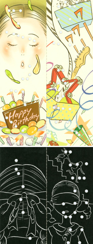 オルゴールの音を決めるための穴が、図形として漫画の構成要素になっている。さらにそれだけでなく、ストーリーともマッチした音楽になっているというすごい作品。まさに、オルゴールと漫画の融合による新しい表現。