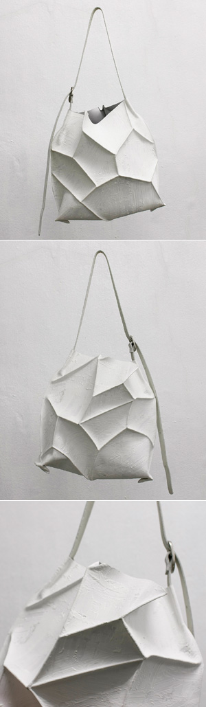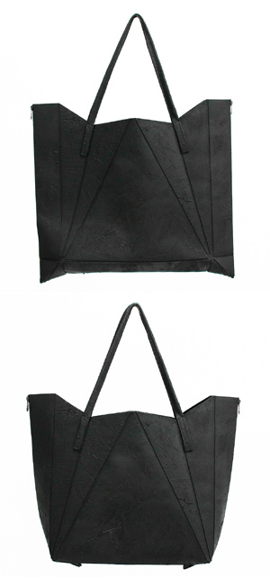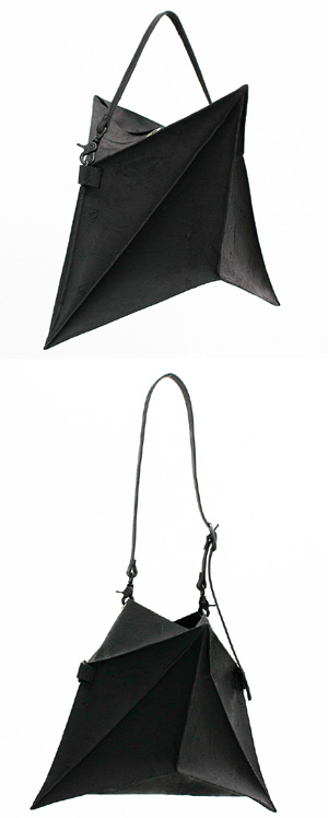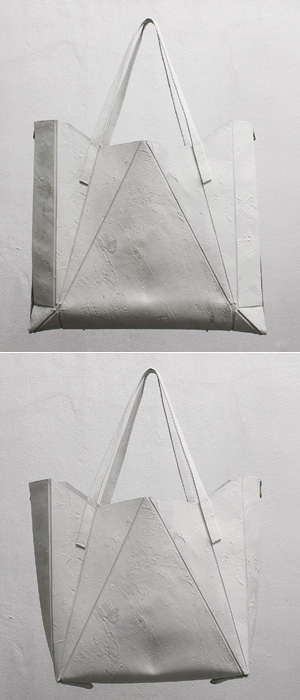 しかし変換される前の図形は、本来カバンの設計図ではありません。それがカバンへと強制的に変換される時、新鮮な驚きを感じさせる造形が立ち上がるのです。