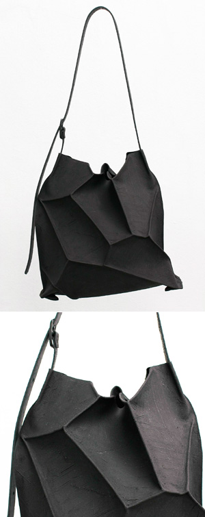 これまでの作品が、カバン+テクスチャという領域に存在していたのに対して、今回のコレクションではカバンの概念からはみ出るような、新しい造形の誕生がいくつか見られます。