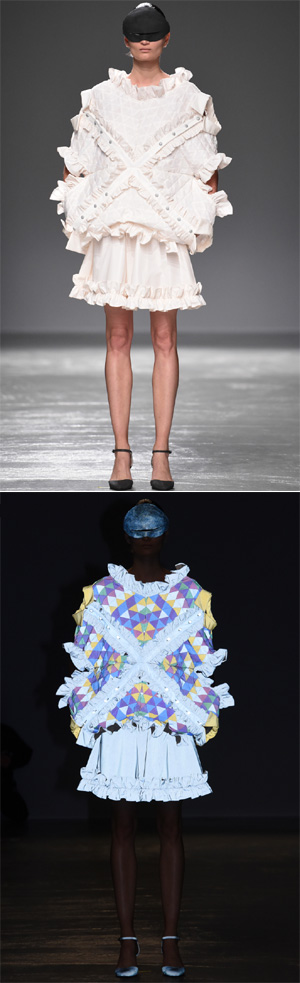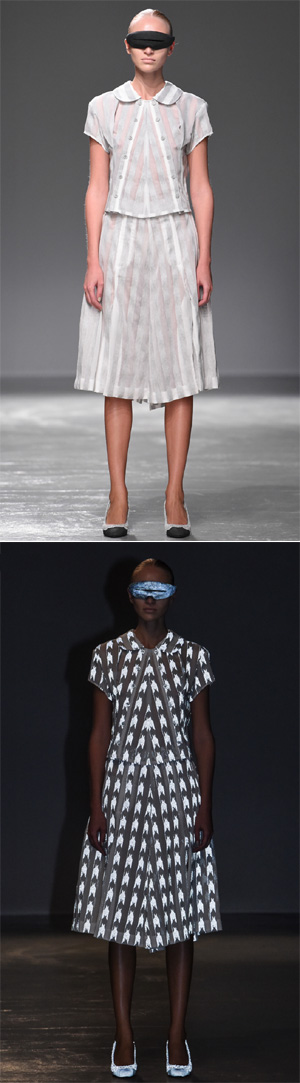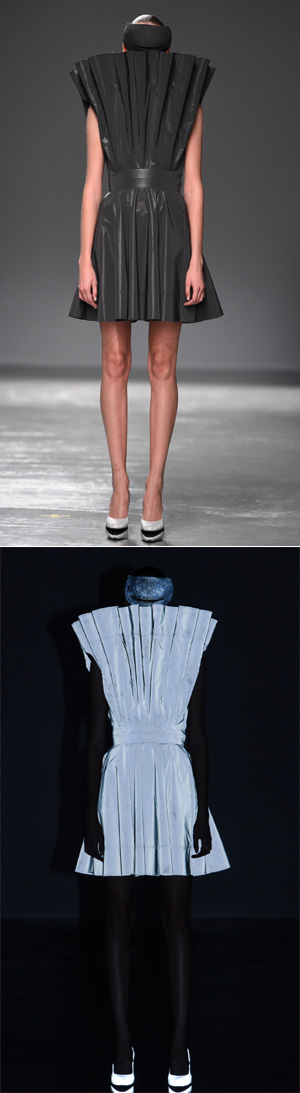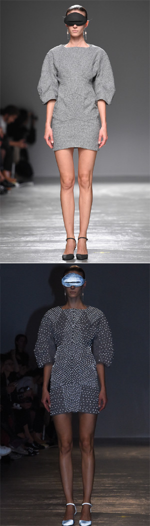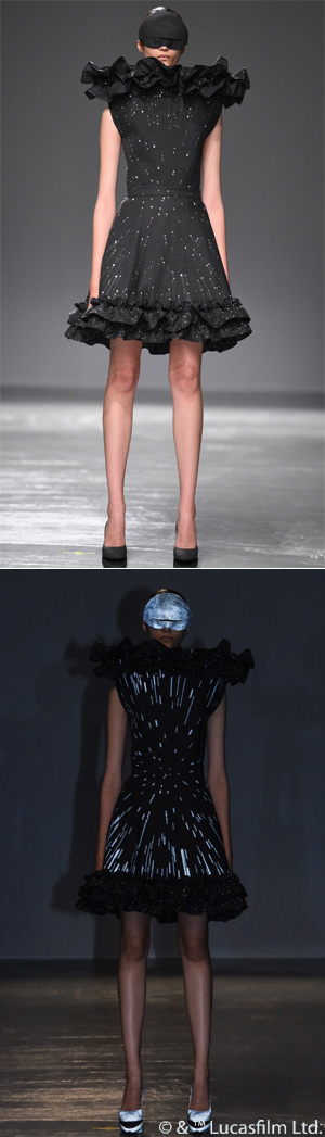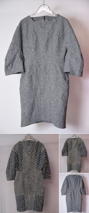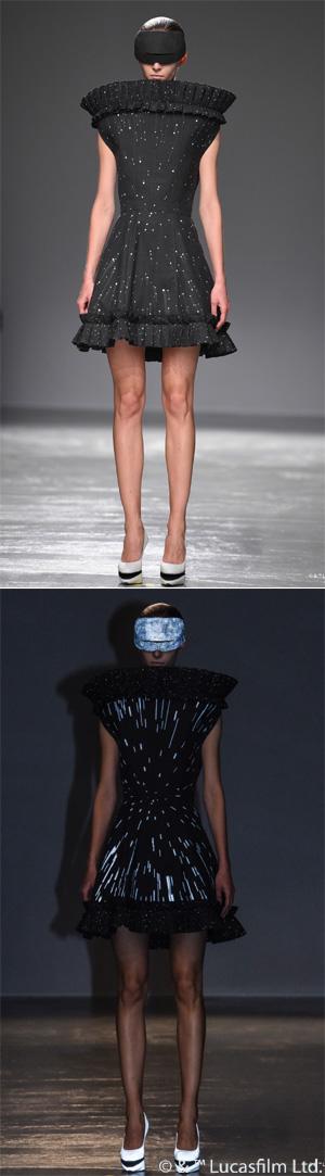 こちらは、keisuke kanda(ケイスケカンダ)との師弟競作。アツい“千人針ステッチ”が光ります。(星降るリフレクターステッチドレス)
