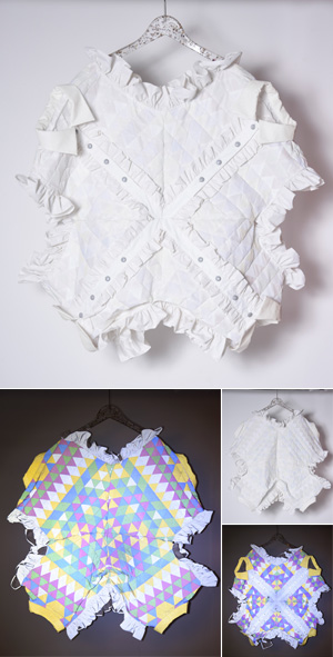 反射材に使われる素材を取り入れて、光を跳ね返す服を作りました。(KALEIDOSCOPE PATCHWORK BLOUSE)