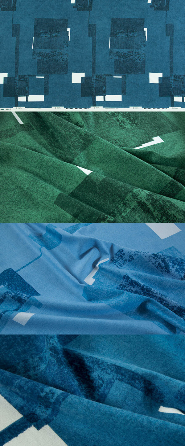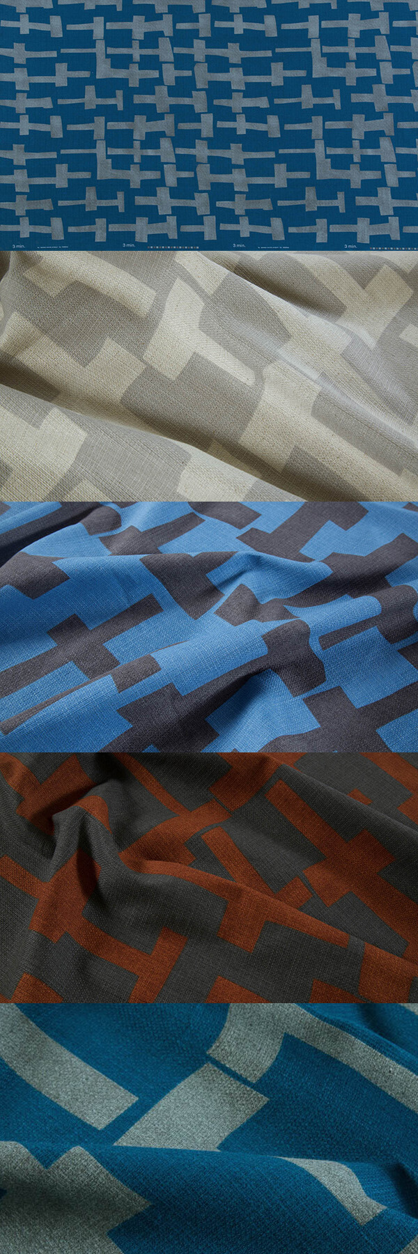 今回のテキスタイルも、色の濃淡によって、図と地が反転したり、あるいは切り取る部分によって全く違う柄に見えたり。そんな変化が楽しめます。