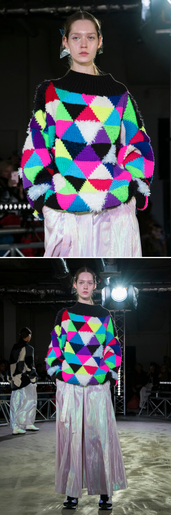 色も形も、素材でさえも、固定された絶対的なものではない。それらと服との関係をずらし、揺さぶることによって、新しい服が見えてくる。そんなメッセージを発するコレクション。