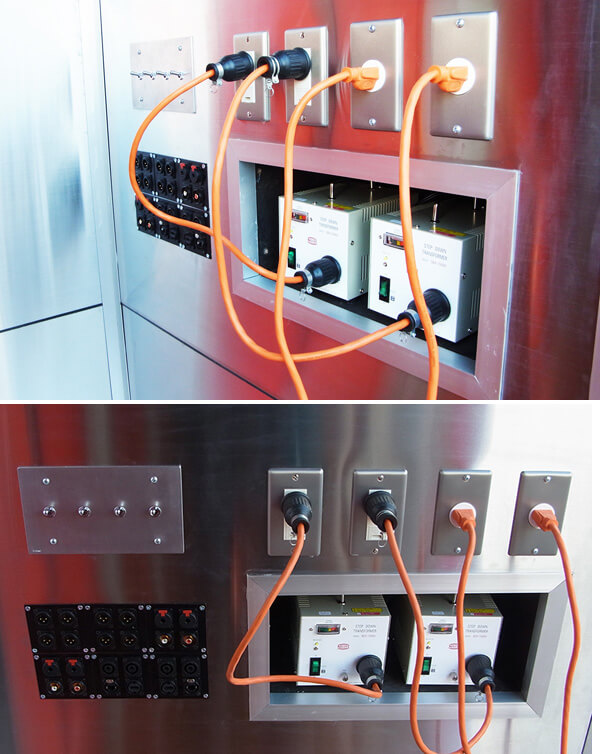 電源ケーブルを引いてきて、ジャックにつなげば、鉄の塊がスタジオに早変わりします。